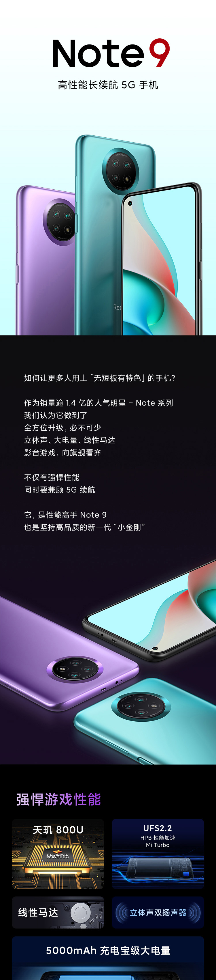 Redmi Note 9 5G 天玑800U 18W快充 4800万超清三摄 云墨灰 6GB+128GB 游戏智能手机 小米 红米